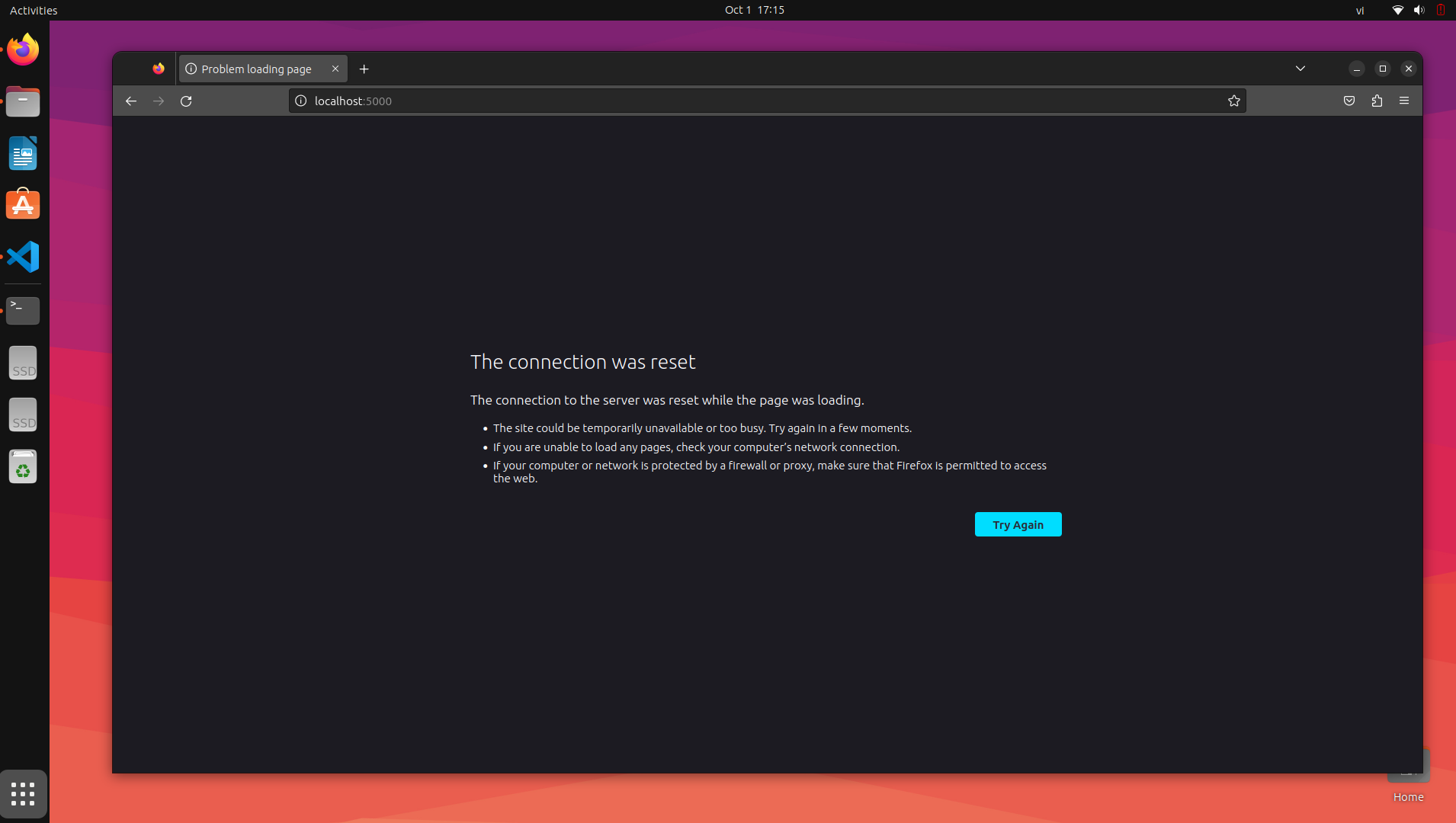 Thử truy cập http://localhost:5000 xem có được không nhé, nếu không được thì kết quả này như mình đã dự tính.